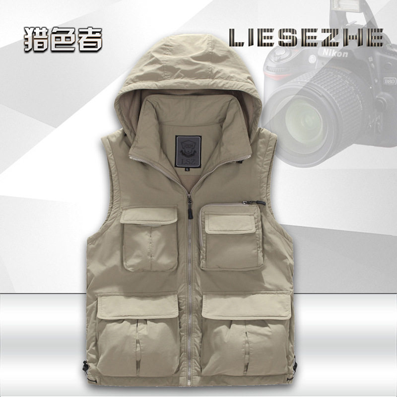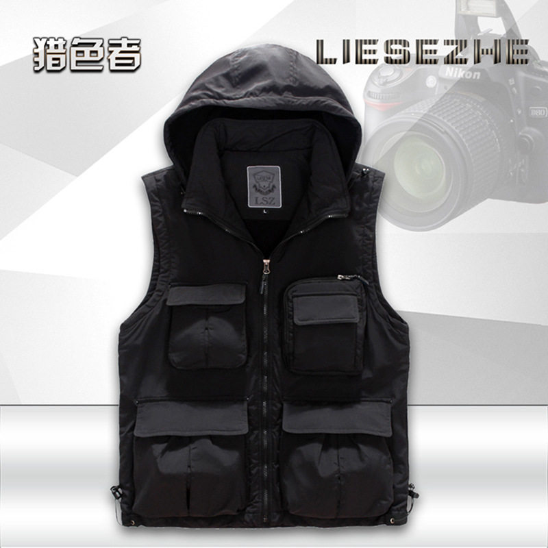 Vest men's autumn and winter fleece warm multi-pocket leisure outdoor photography fishing vest vest advertising vest customization