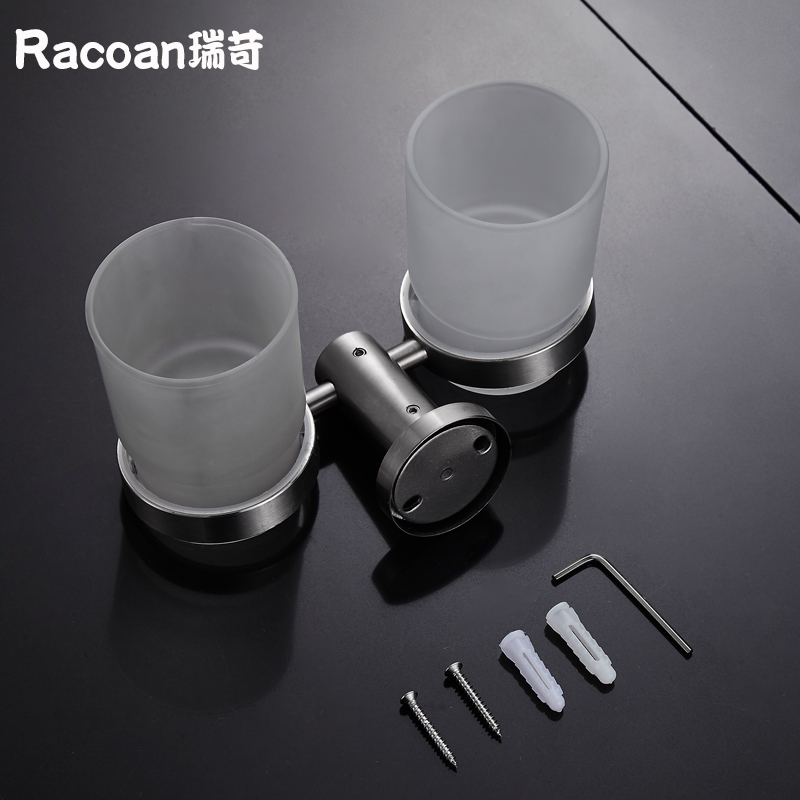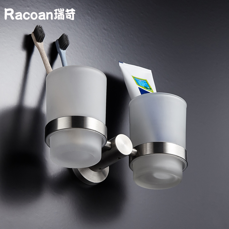 304 stainless steel brushed hole-free powder room hardware bathroom pendant Toothbrush holder Brushing mouthwash cup double cup