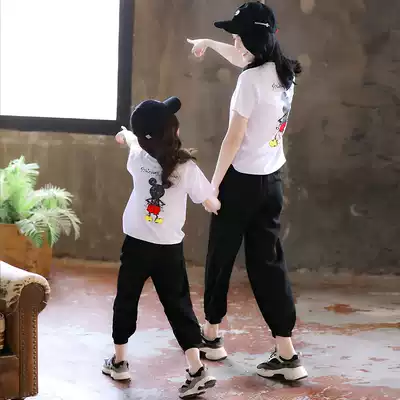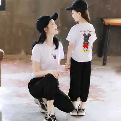 Parent-child Women foreign style set 2021 women's clothing Korean summer short sleeve T-shirt sports two-piece set tide
