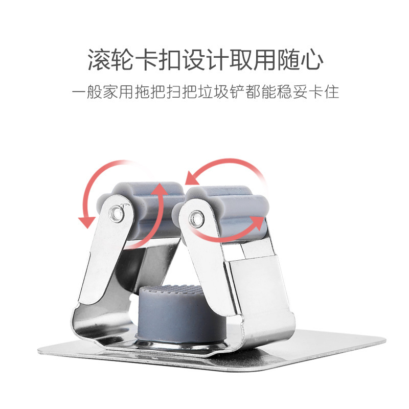 No-Punch Mop Rack 304 Stainless Steel Mop Hook Sweep Rack Mop Clip No-Punch Wall Hanging Grey No Trace
