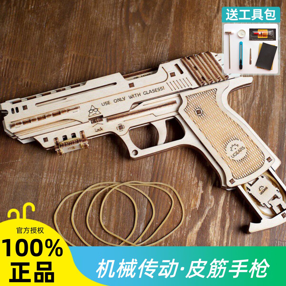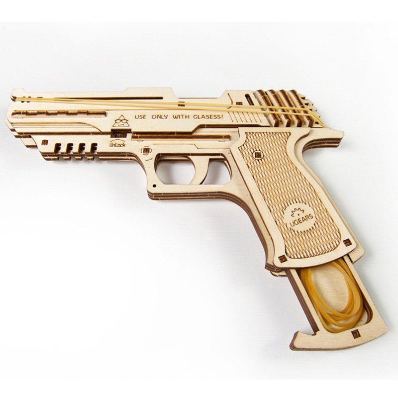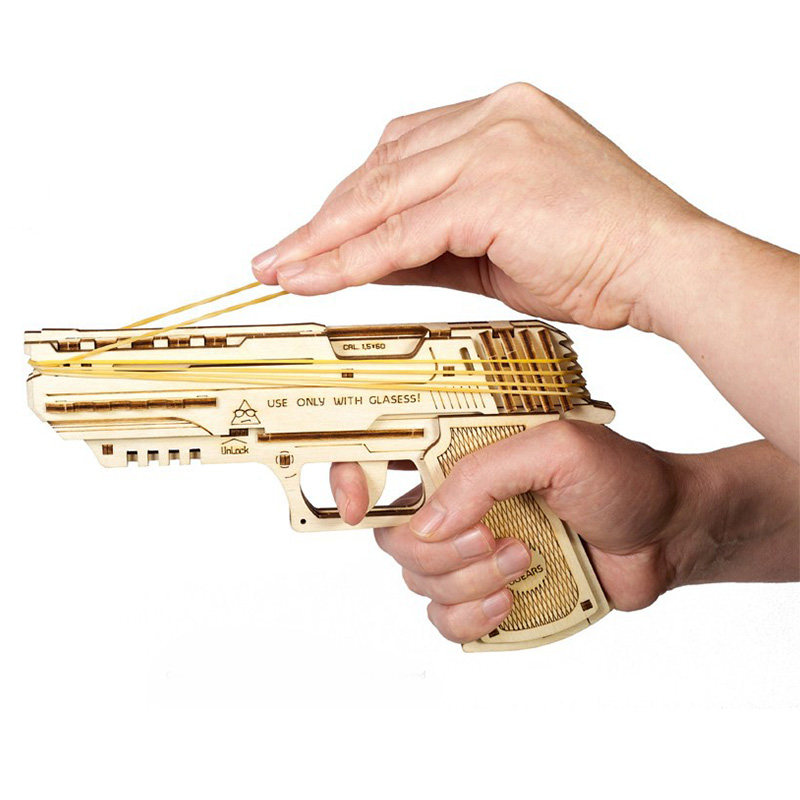 Ukraine UGEARS wooden mechanical transmission model rubber band pistol continuously fires children's building blocks assembled toys