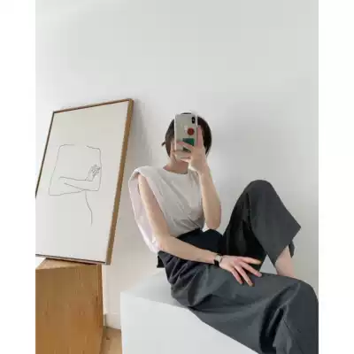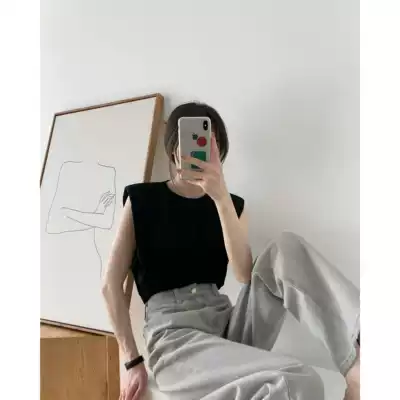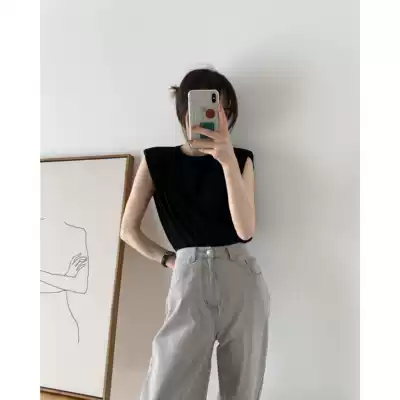 ICTS fashionable upgrade with memory point of design black and white shoulder shoulder shoulder retro wide shoulder sleeveless Tee