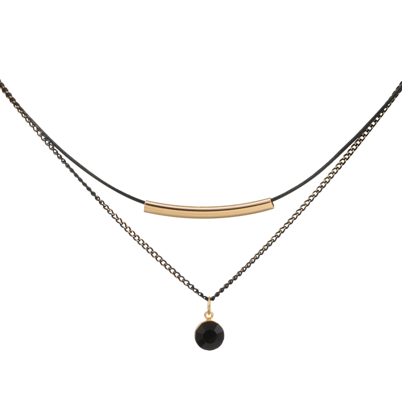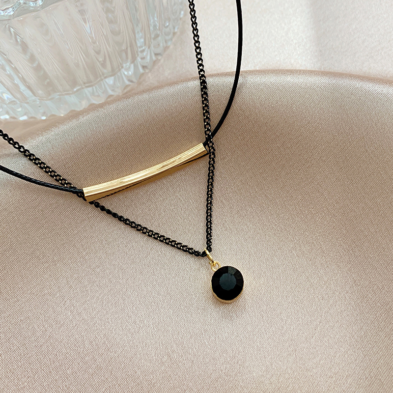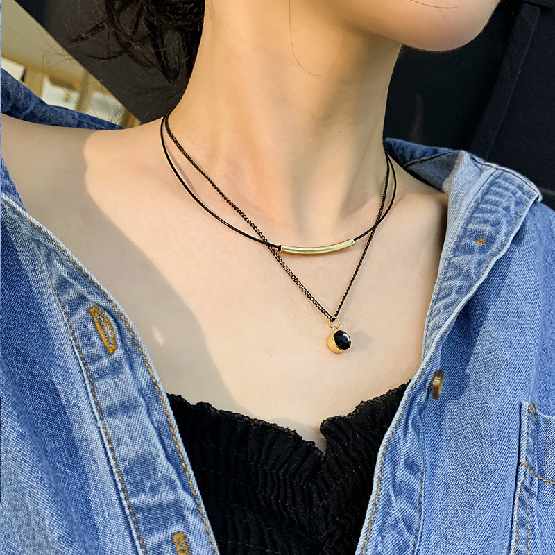 Clavicle chain Black dark black European and American style necklace Female ins cold wind sweater neck sweater chain 2021 new