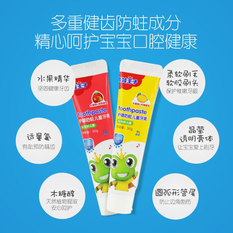 Frog Prince Children's Toothpaste 3 - 6 - 12 years old fruit taste prevention morning and night to protect baby toothpaste