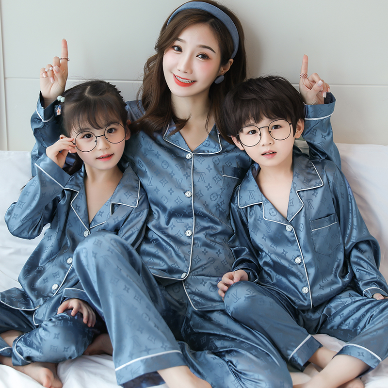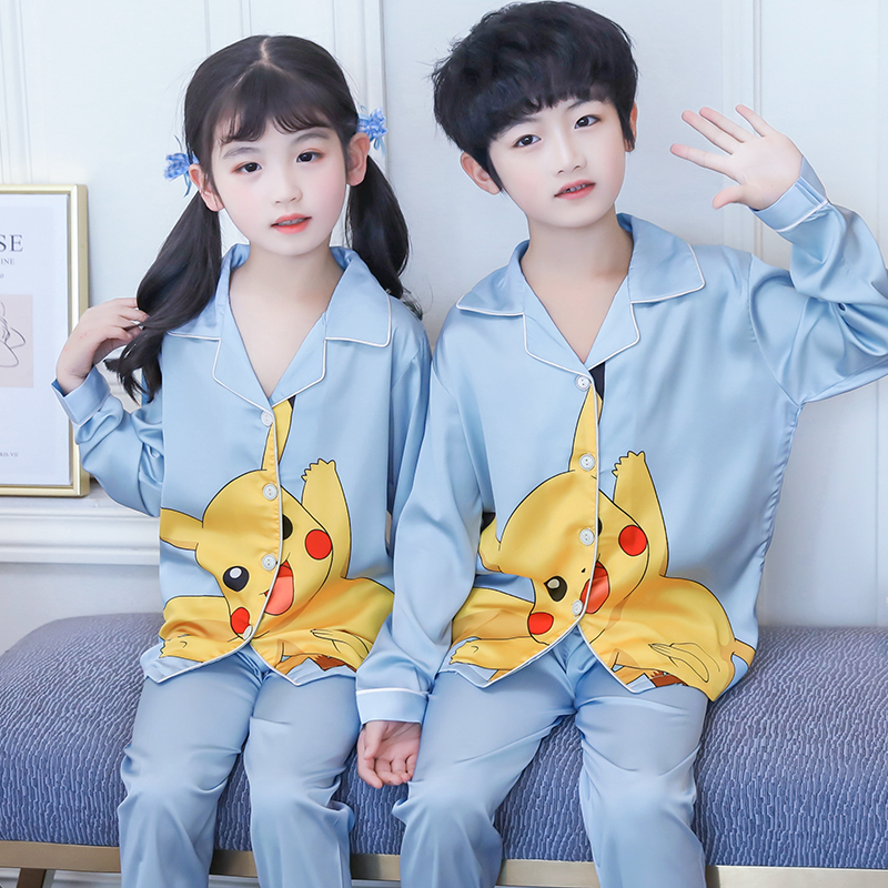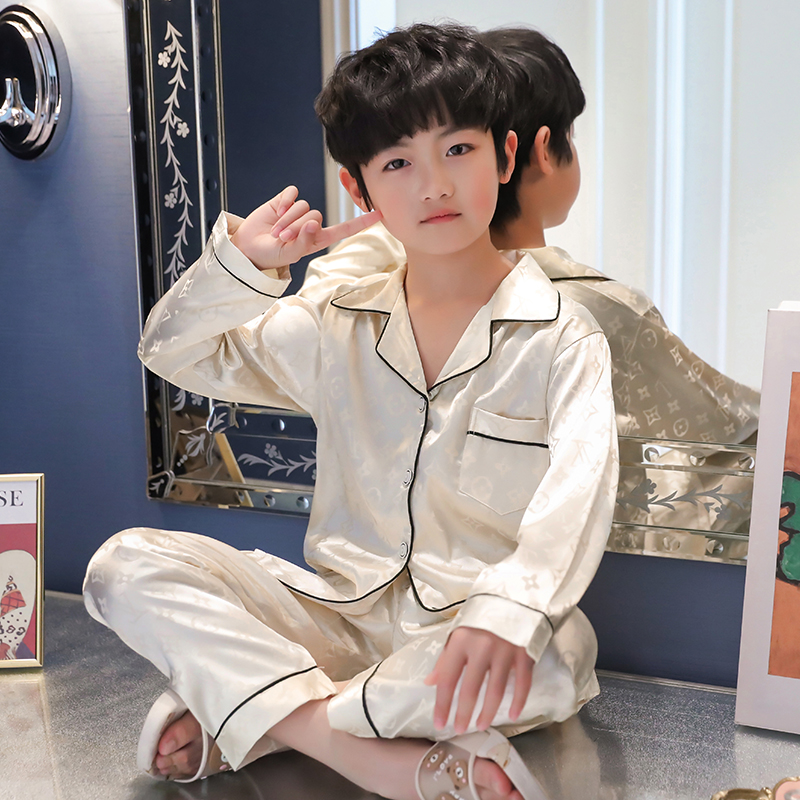 Children's pajamas boys summer long sleeves long pants ice silk thin spring and autumn boys middle and oldest children silk loungewear set