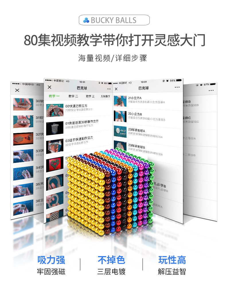Bright silver - 5mm216pcs 6 mysterious black - 5mm216pcs 6 colorful (random 6 colors) 5mm216pcs 6 36 magnetic rods 27 balls (magnets
