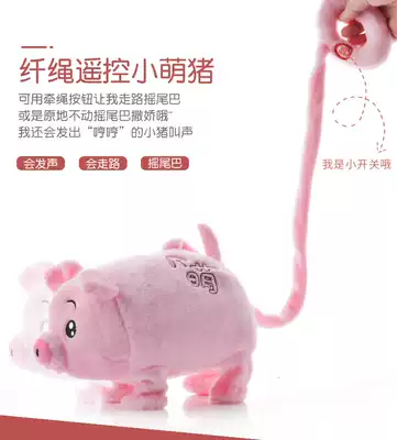 Electric leash little cute pig little fart children's simulation can bark and walk little pig doll plush toy Birthday gift