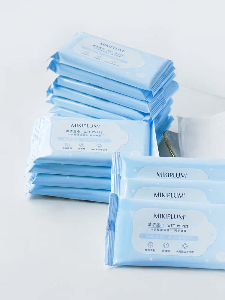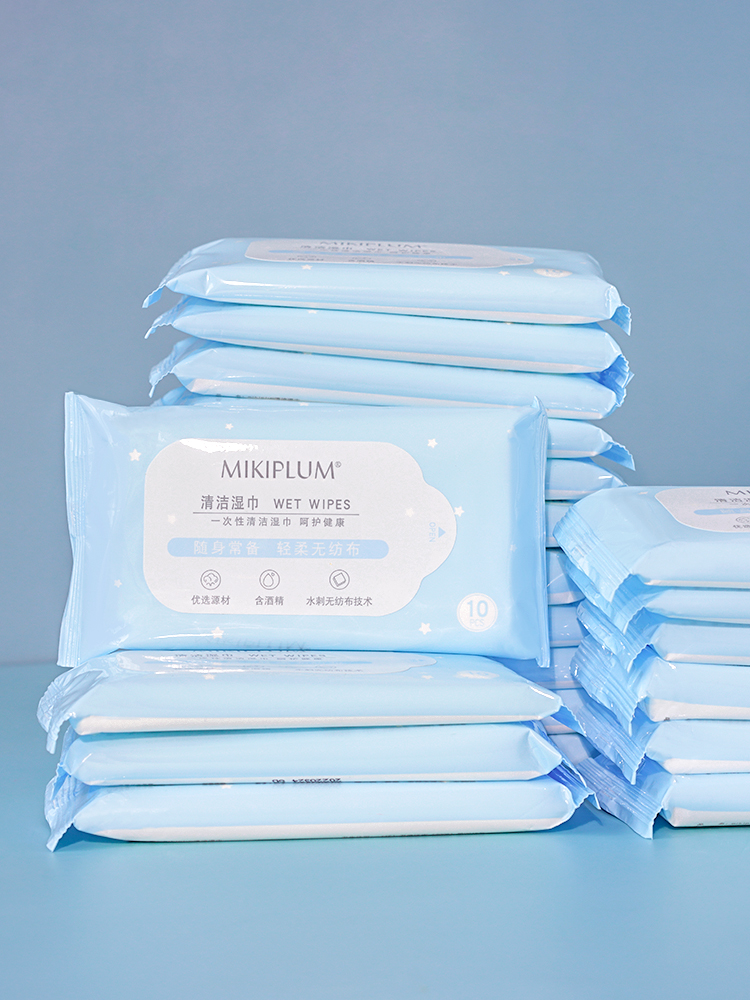 MIKIPLUM Alcohol Wipes Portable Portable Office Sterilization Small Bag Wet Wipes 10 Pumps*15 Packs