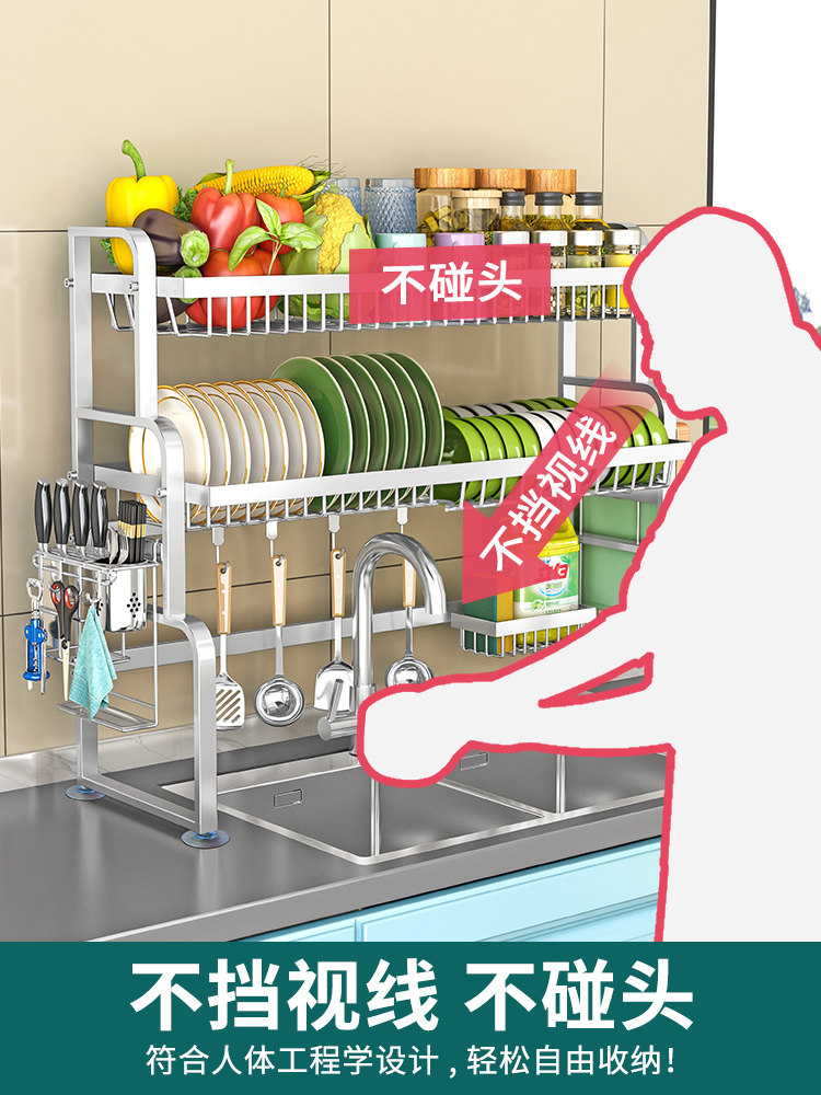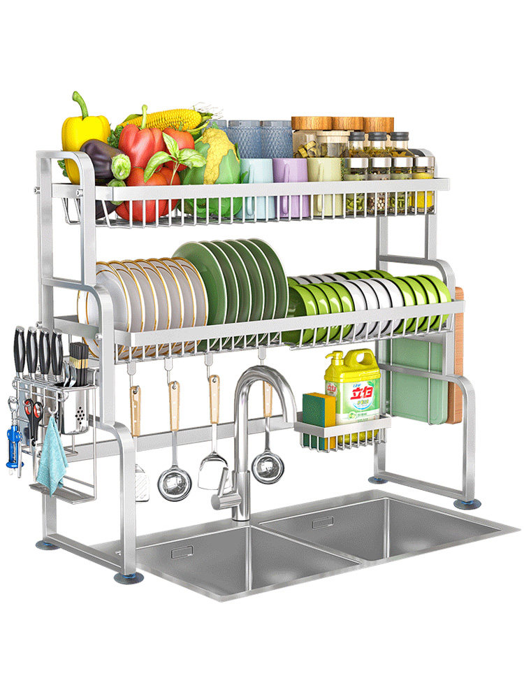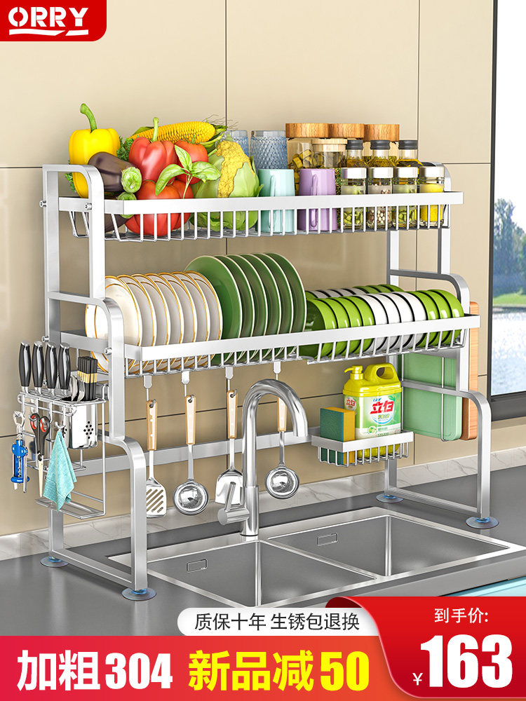 304 stainless steel kitchen sink drain rack bowls and chopsticks storage box above the pool to dry dishes shelf multi-layer