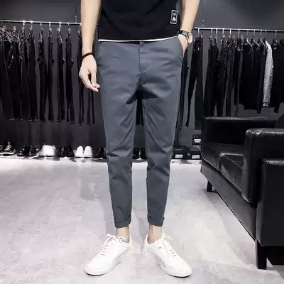 Spring and summer casual pants men's slim feet, handsome ankle-length pants men's wild youth straight pants men's Korean version of the trend