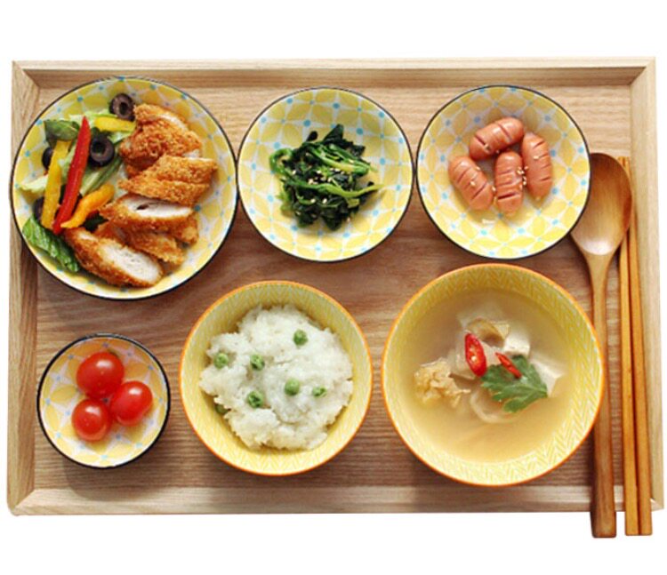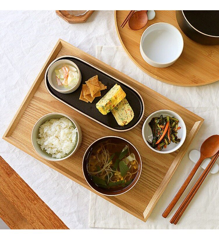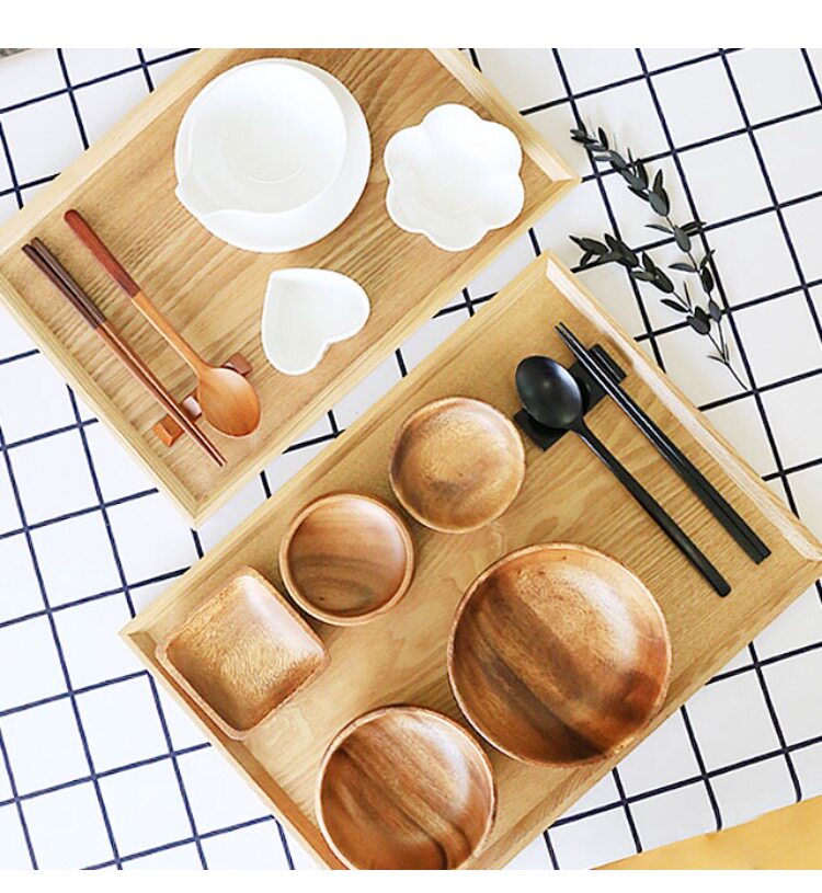 Korean eating and broadcasting plan with Japanese-style solid wood plate cup bowl anti-scalding heat insulation rectangular hand tray mat chopping board