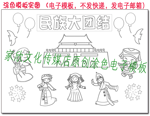 A3A4 8k4k National Large Solidarity Children's Painting Primary School Children's Kindergarten Black and White Line sketching Electronic Templates