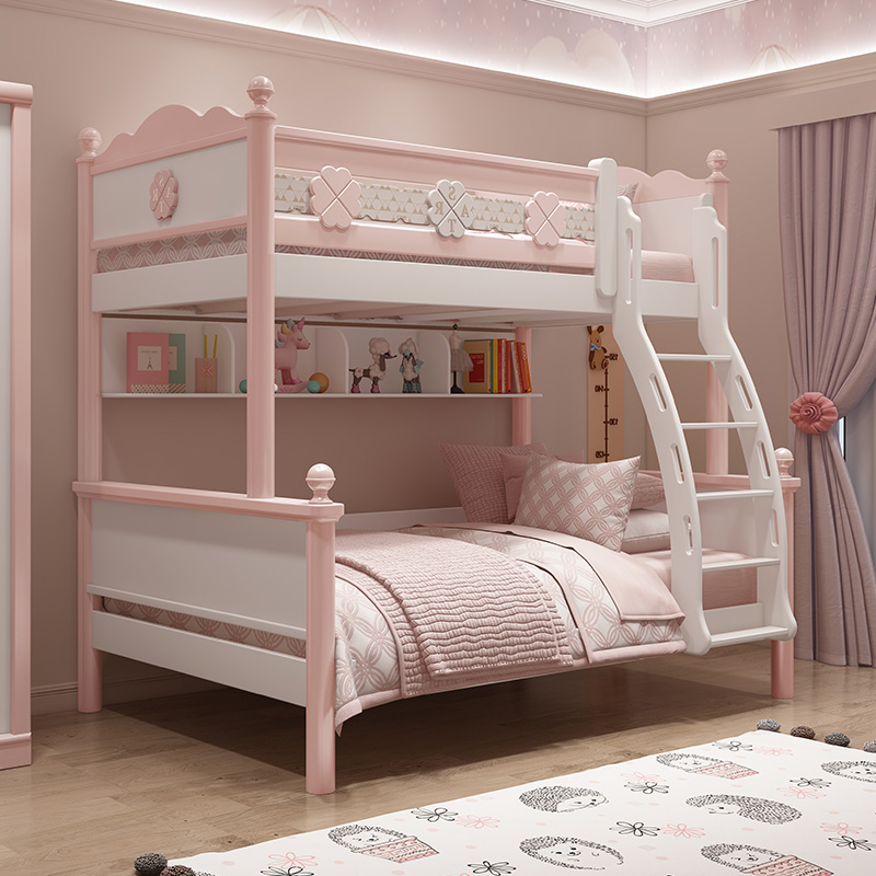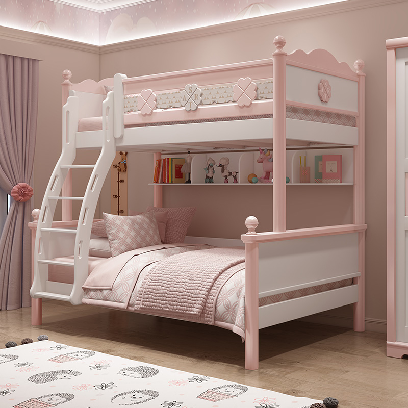 High and low bed Children's bed Girl Princess bed Solid wood mother bed Dream pink double two-layer bed Bunk bed
