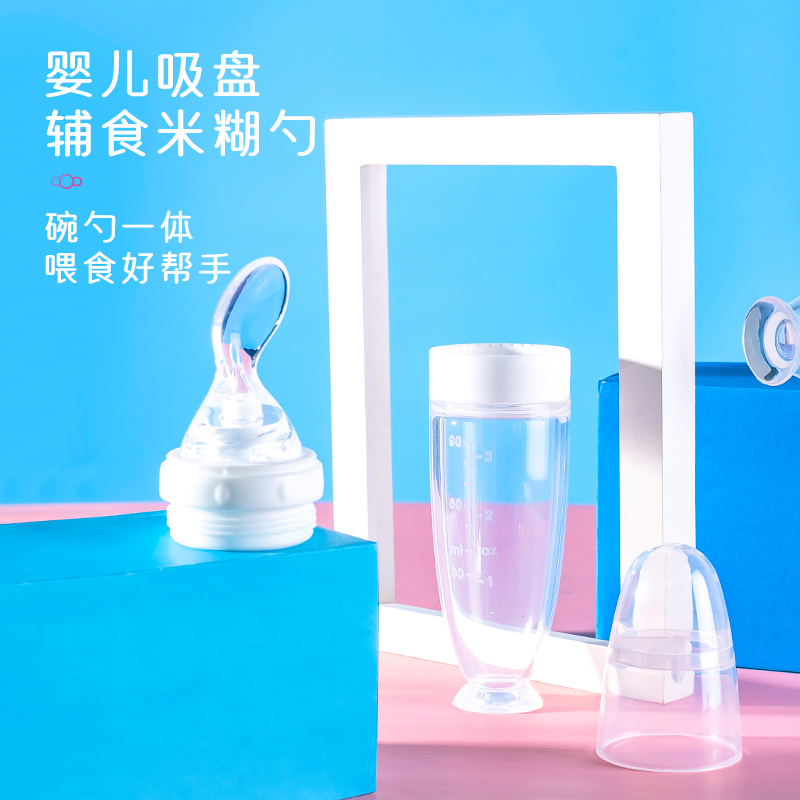 DX Baby Silicone Gel Vice Food Bottle Baby Feeding Rice Flour Spoon Suckling Bowl Spoon Suit Newborn Soft Tablespoon Rice Burnt Bottle