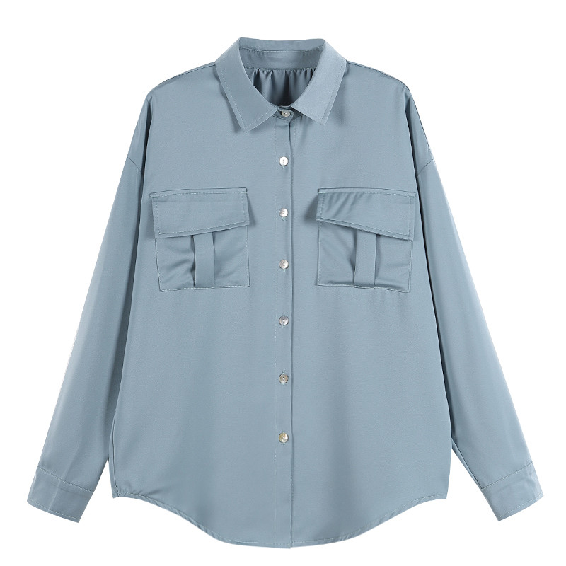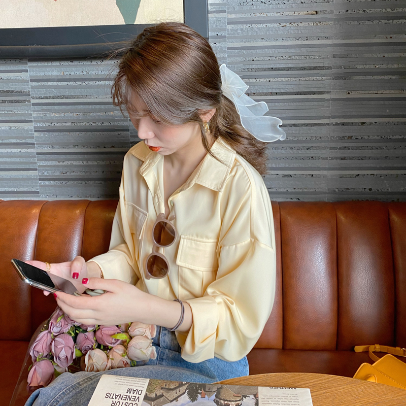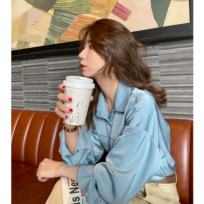 Berry likes you and loves Da Pang custom autumn new gentle solid color top temperament loose long-sleeved shirt women