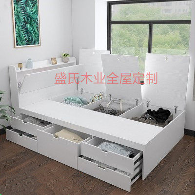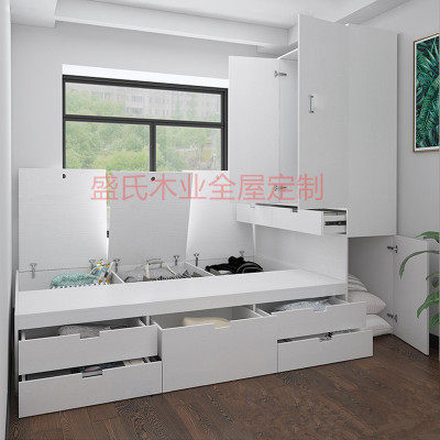 Small apartment tatami bedside table all-in-one combination bedroom plank bed custom tread meter bed storage bed multi-function