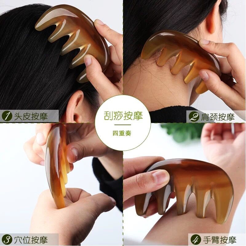 Good workmanship white buffalo horn scraping board natural horn scalp massage comb head acupoint meridian comb scraping