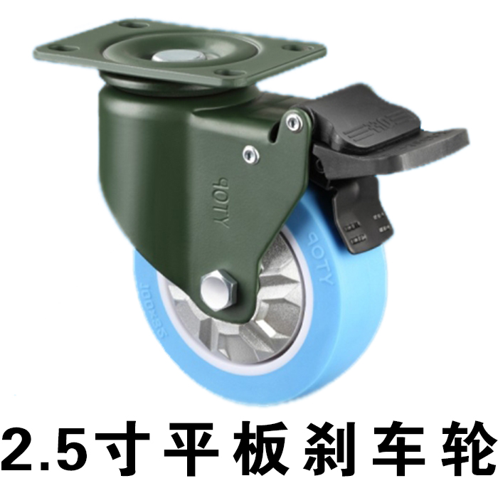 2 5 Inch Polyurethane Silent Wheel 63mm Blue PU Wire Rod Universal Orientation Brake 18A Zhuoymanganese Steel Castors YTOP