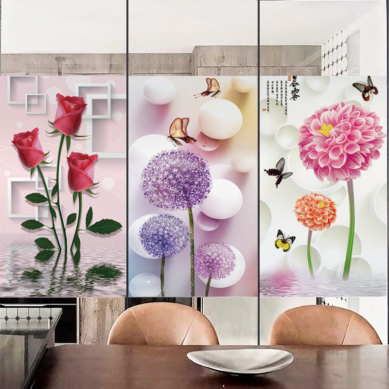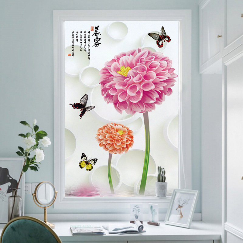 Electrostatic Frosted Glass Stickers Cling Film Windows Balcony Shading Makeup Room Bathroom Anti-Peep Windows Flower Free opaque