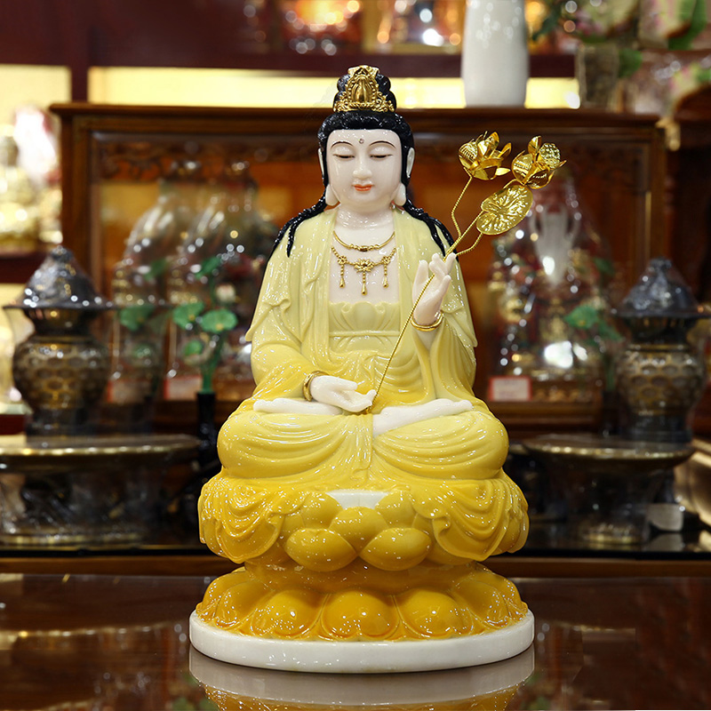 Han Baiyu yellow glaze Western Sansheng Buddha statue Guanyin Bodhisattva Amitabha Buddha Dashizhi Bodhisattva statue decoration