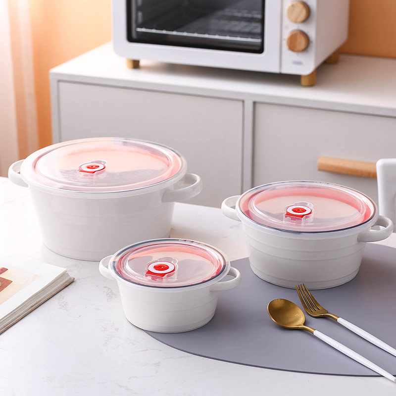 Dongsheng Salah double ear soup bowl large household microwave oven heating bubble bowl with cover ceramic style handle