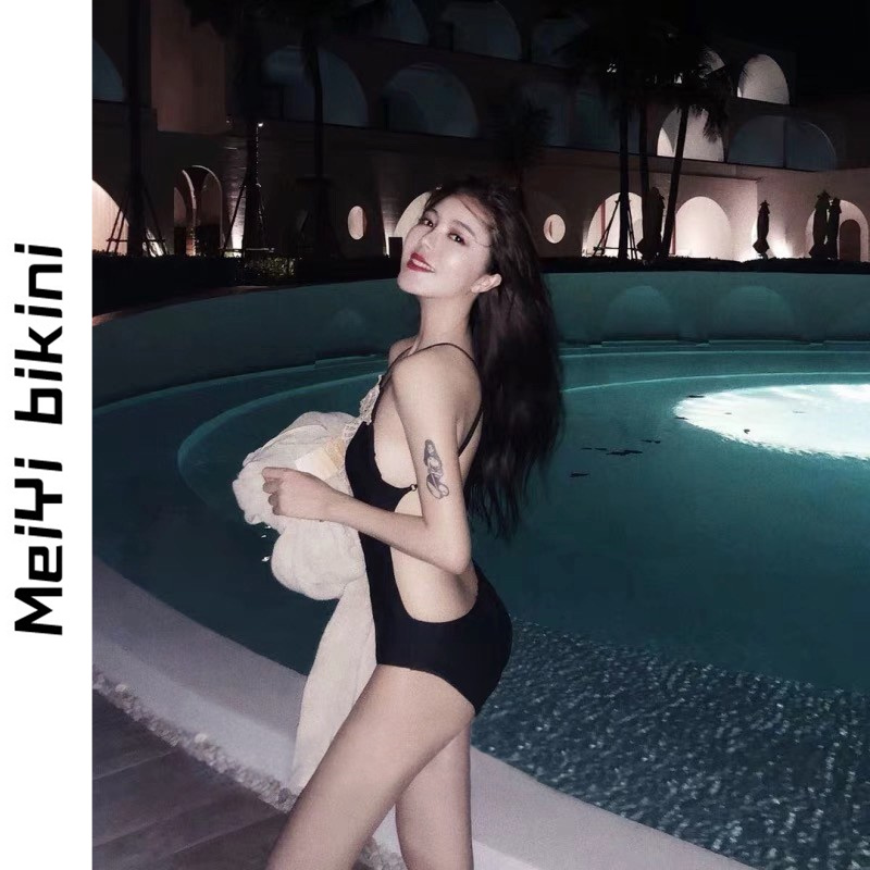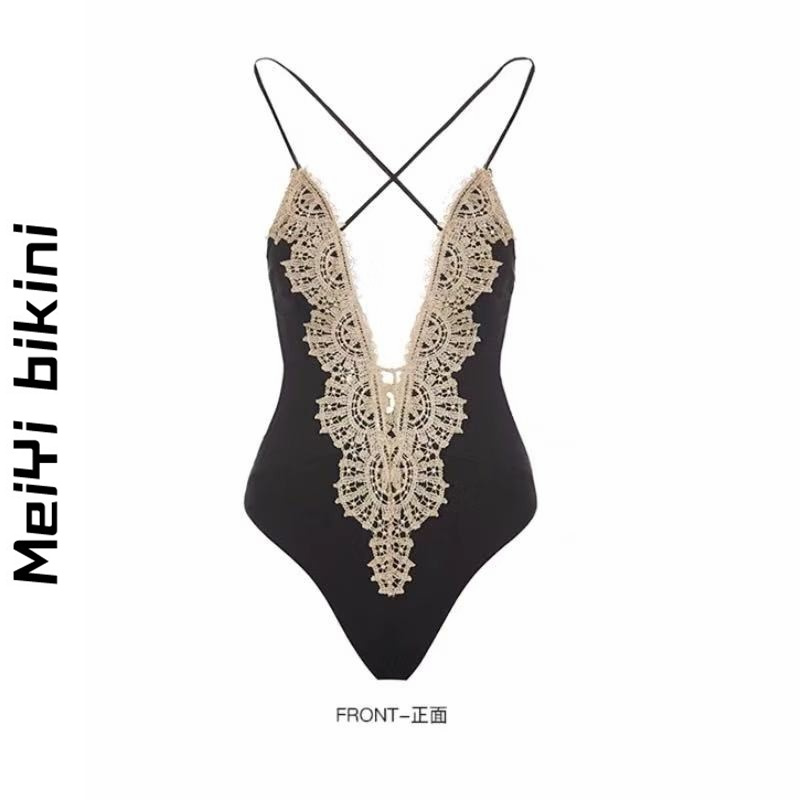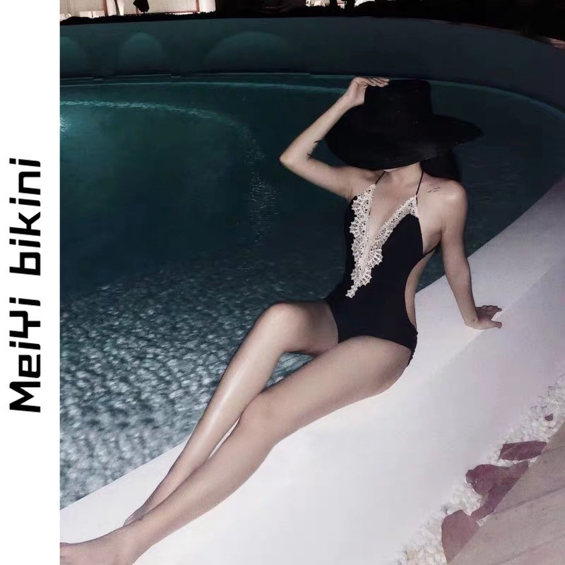 MeiYi ins little red book recommending lace V collar bikini black even body sexy spa women's swimsuit woman