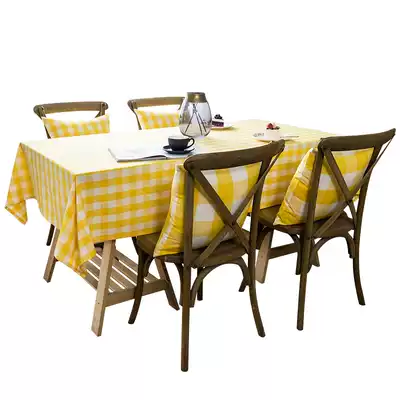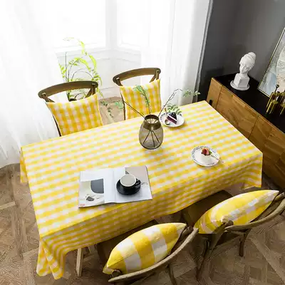 Classic yellow plaid cotton linen pink plaid Nordic minimalist modern lace table cloth coffee table tablecloth