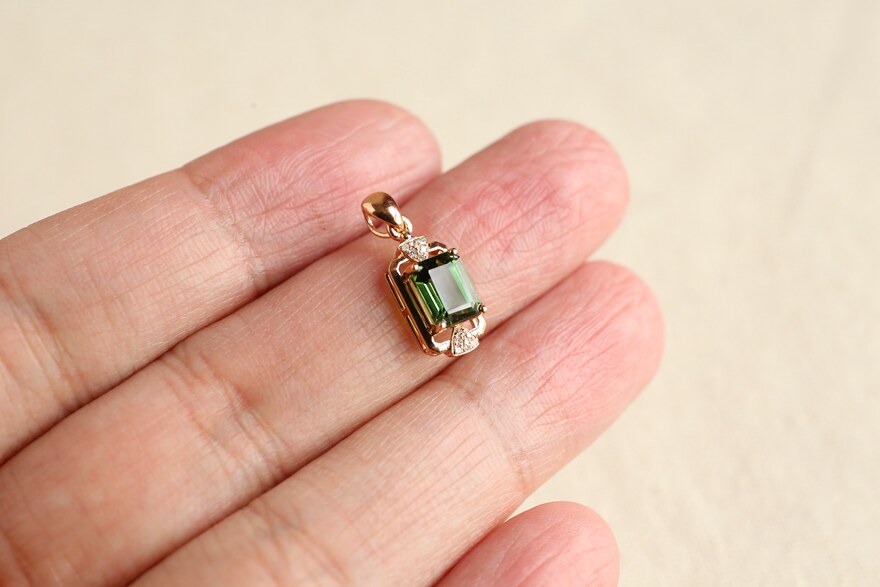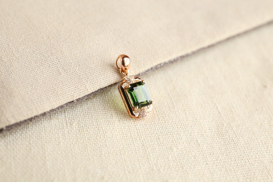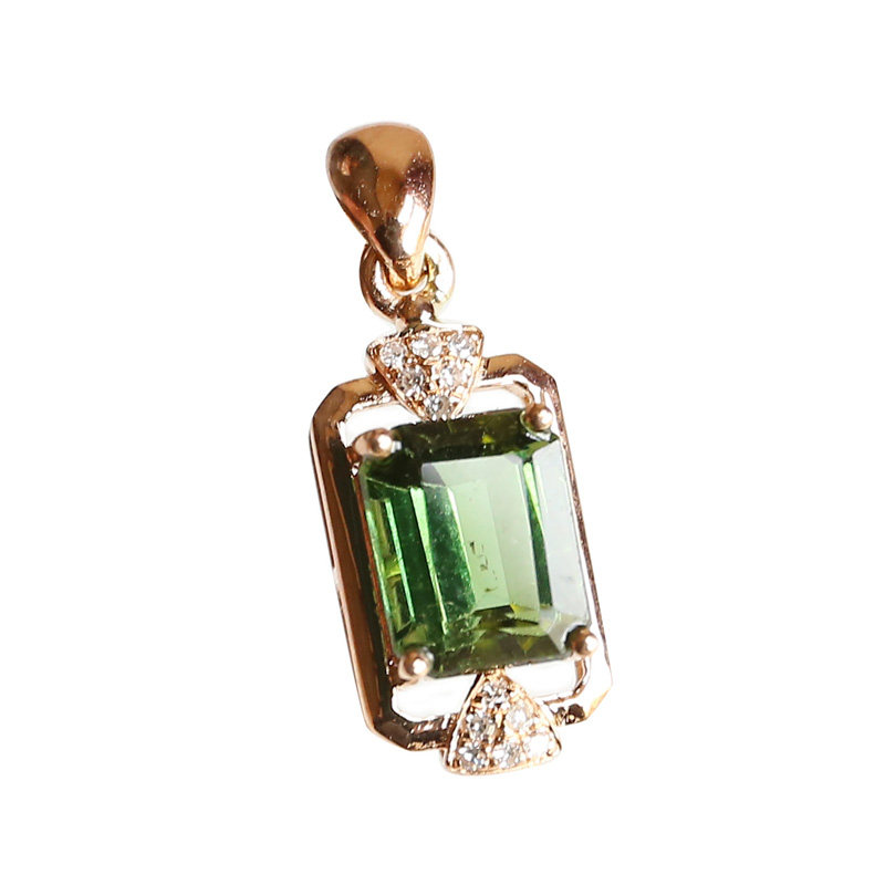 Center stone 1 75 carat green tourmaline pendant pendant 18K rose gold diamond inlaid simple fashion women