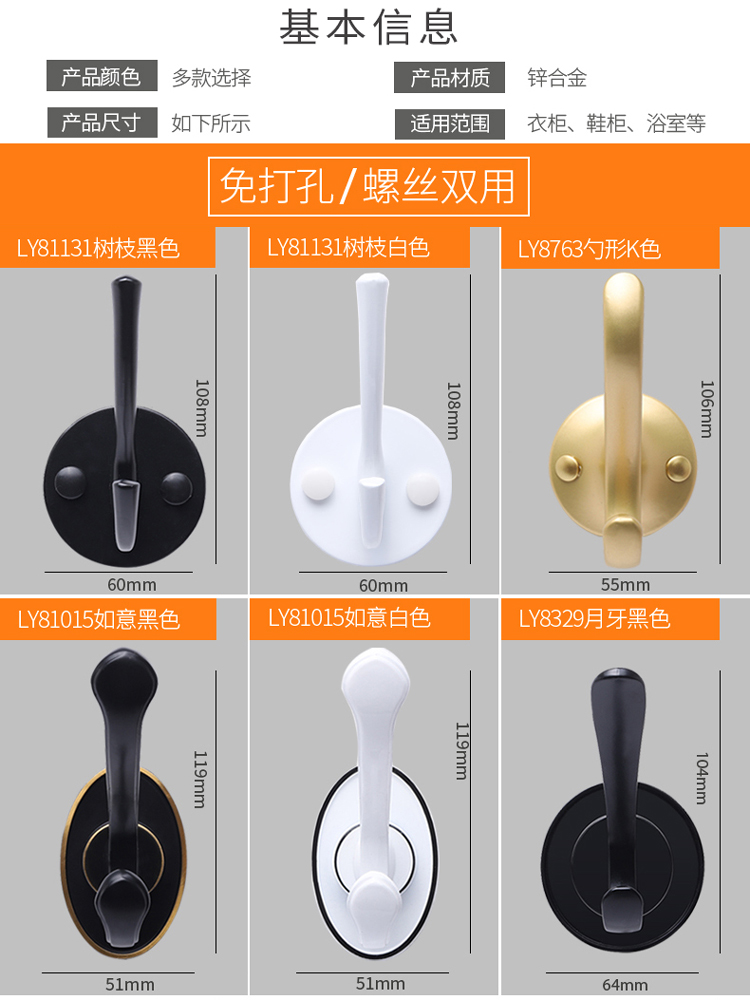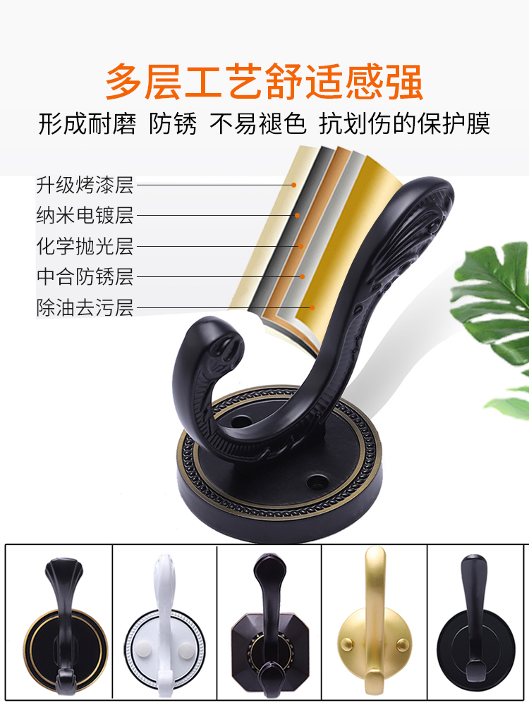 European hanging hook Clothes rack Free hole coat hook Single hook Single hook Wall-mounted wall-in-door wardrobe hook
