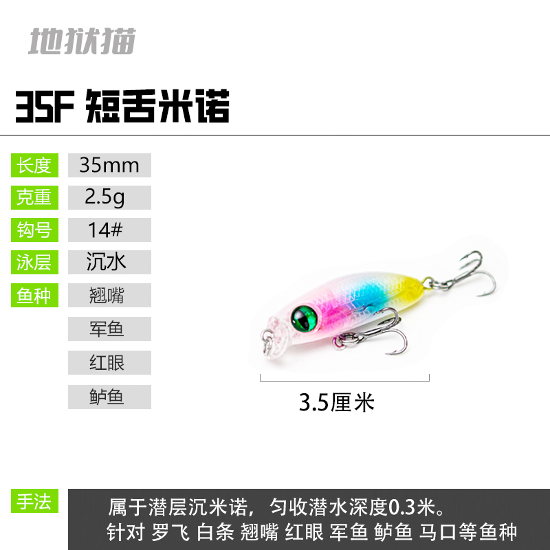 Hellcat Lutheria Japanese Department of Microbait 2 5g grams 35cm Submerged Short Tongue Shallow Mino Roo Flying Teething Red Eyes