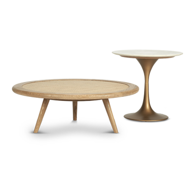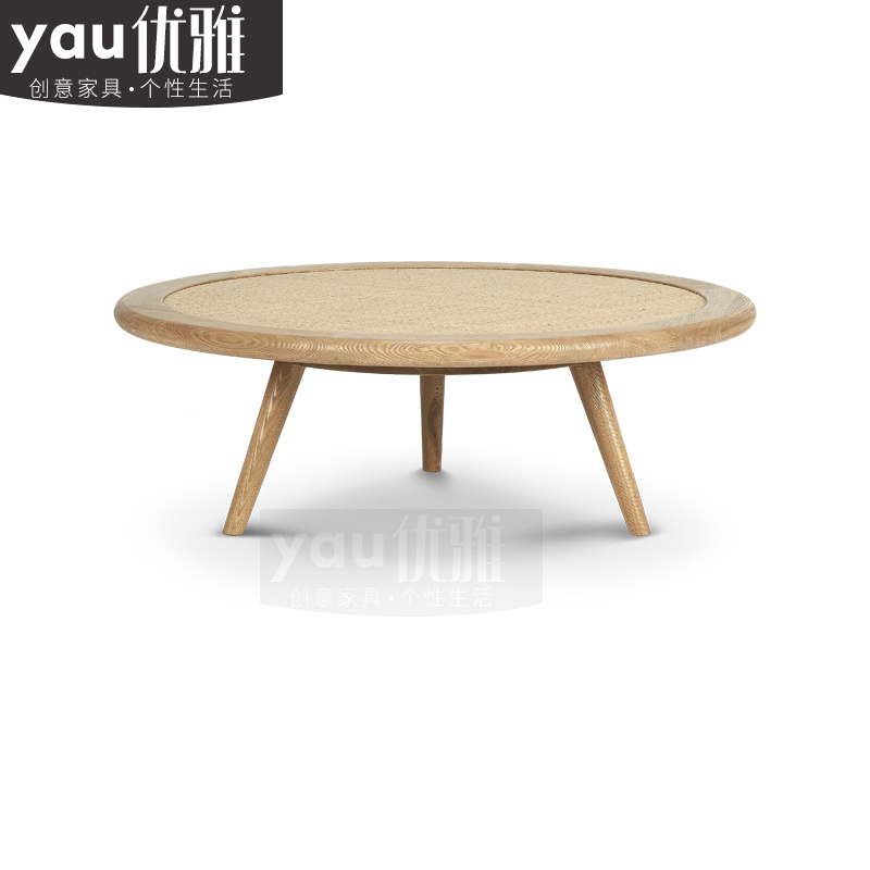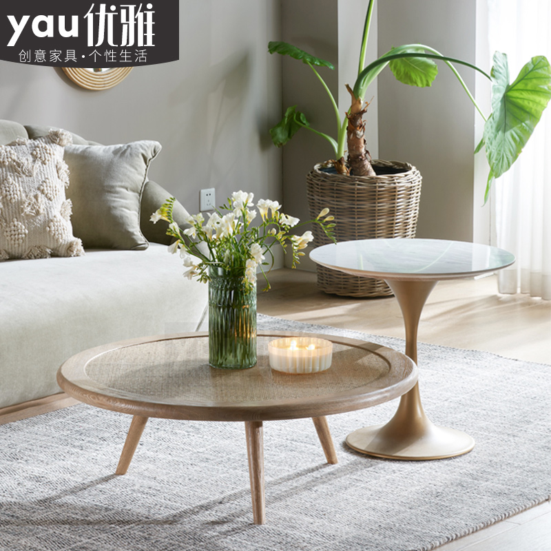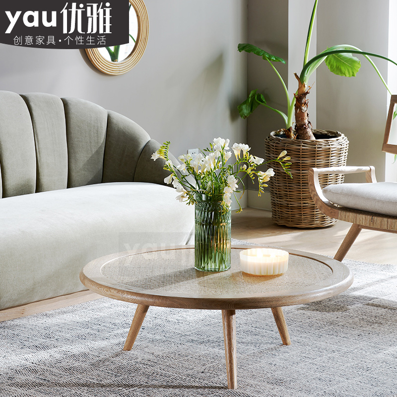 American-style solid wood homestay rattan element round coffee table Nordic modern minimalist living room home solid wood creative small tea table