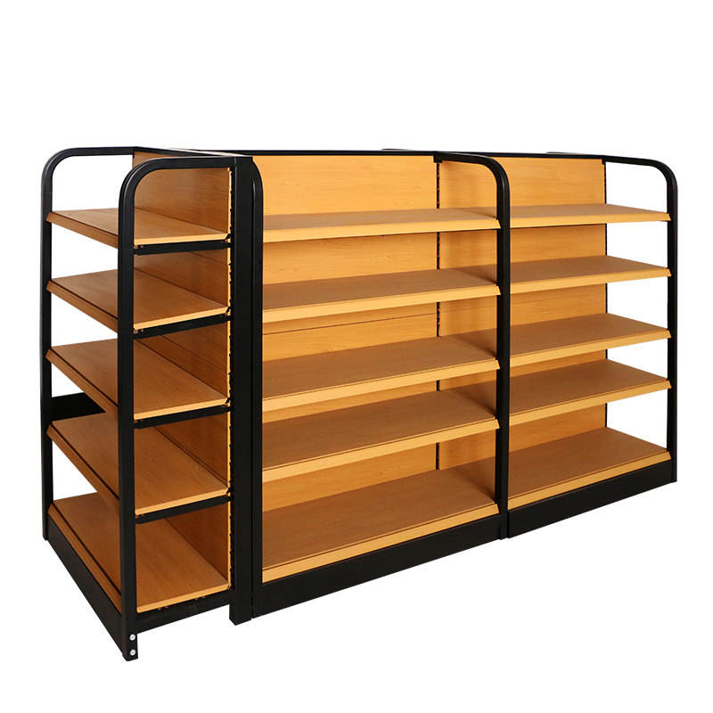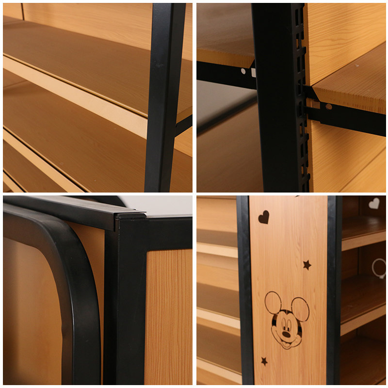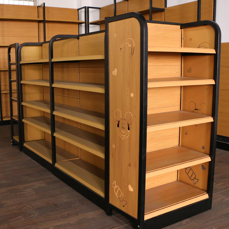 Supermarket shelf convenience store four-post wood grain shelf pharmacy mother and baby retail store display stand single-sided double-sided display cabinet