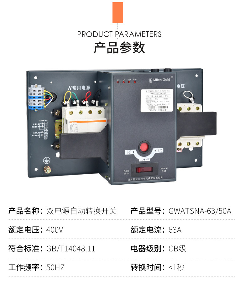 Tianjin Merangzhan CB Class ten thousand High Type Double Power Supply Automatic Transfer Switch GWATSNA3P4P32A40A63A