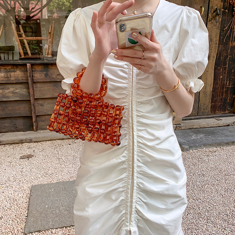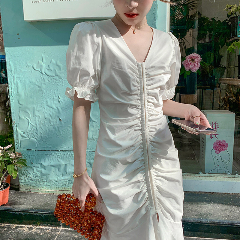 Improved cheongsam female summer 2022 one-character shoulder temperament slim French small fragrance white engagement fishtail dress
