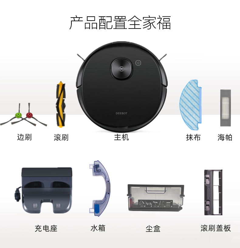 Dust box * 1 side brush * 2 pairs of charging cradle * 1 roller brush * 1 roller brush cover plate * 1 hippo * 5 pieces of rag * 5 pieces of rag holder * 1 water tank * 1 vibration water tank * 1 water tank cleaning liquid * 2 pieces of dibao cleaning liquid * 2 disposable wipes * 25 pieces of disposable wipes * 50 pieces of disposable microfiber rags * 10 pieces of disposable microfiber rags * 20 pieces of disposable microfiber rags * 25 pieces of disposable microfiber rags * 50 pieces
