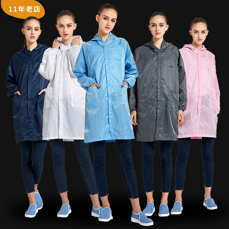 Antistatic large coat blue white striped pull chain with cap dust-free to work with electronic workshop Electrostatic clothes