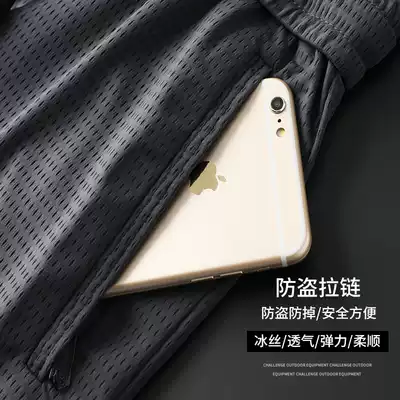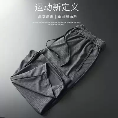 Casual pants, men's cropped pants, men's summer thin hollow mesh ice silk pants, men's loose over-the-knee sports shorts
