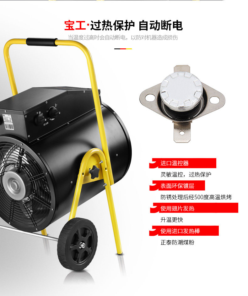 Baogong 380V industrial heater speed thermal electric heater three-phase electric high-power heater farm workshop drying