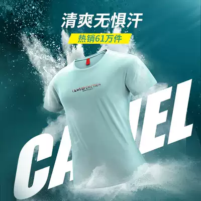 Camel men's quick-drying clothes T-shirt men's elastic quick-drying ice silk short sleeves thin and breathable loose half-sleeve fitness clothes