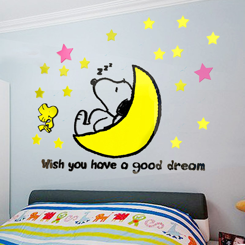 Snoopia acrylic 3d three-dimensional wall stickers children's room cartoon stickers decoration boy bedroom bedside wall stickers - Taobao