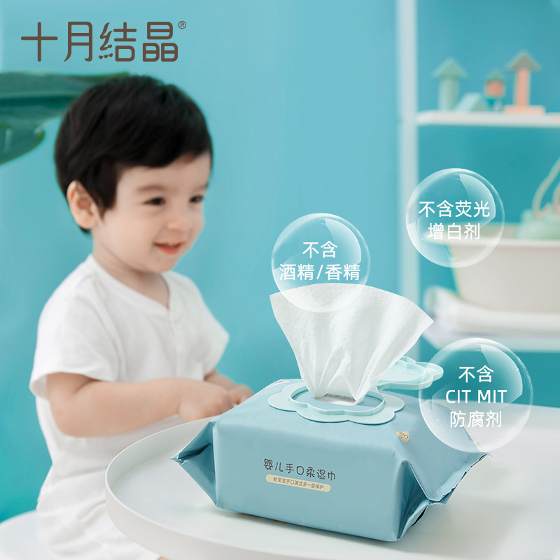 October crystallized baby wipes newborn hands and mouth special wet wipes baby wet wipes with lid 80 pumps*10 packs - Taobao