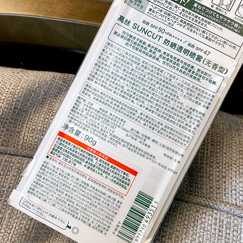 Cai Xukun same Japanese KOSE Kose SUNCUT sunscreen spray waterproof face body colorless transparent refreshing