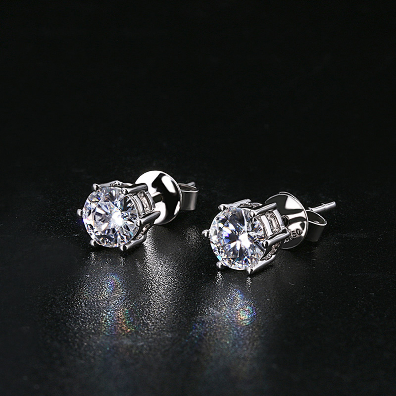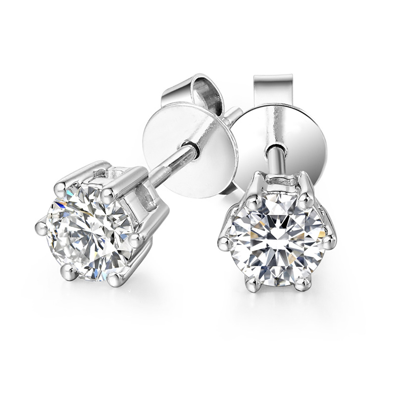 Classic four - six claws 18k platinum D - Mozambe 50 points 1 carat ear - nail earring diamond custom male and female models