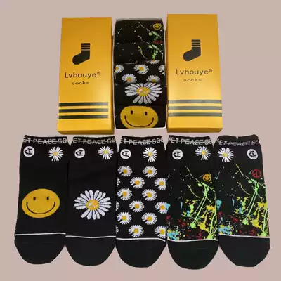 Five small daisy socks, one pair each, five pairs, one box of small daisy socks, mandarin duck, five pairs, one box of small daisy socks, multi-chrysanthemum, five pairs, one box of small daisy socks, anti-war, five pairs, one box of small daisy socks, smiley face, five pairs, one box of small daisy socks, smiley face, five pairs, one box of small daisy socks, smiley face, five pairs, one box of small daisy socks, smiley face, five pairs, one box of small daisy socks