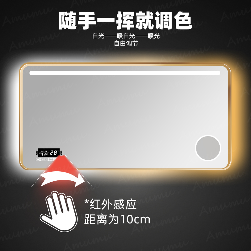 The frame defaults to light luxury gold (black, silver and white optional message) can be customized in mm (function six keys default to the left) width 900 height 700 (smart six keys magnifying glass integrated) horizontal