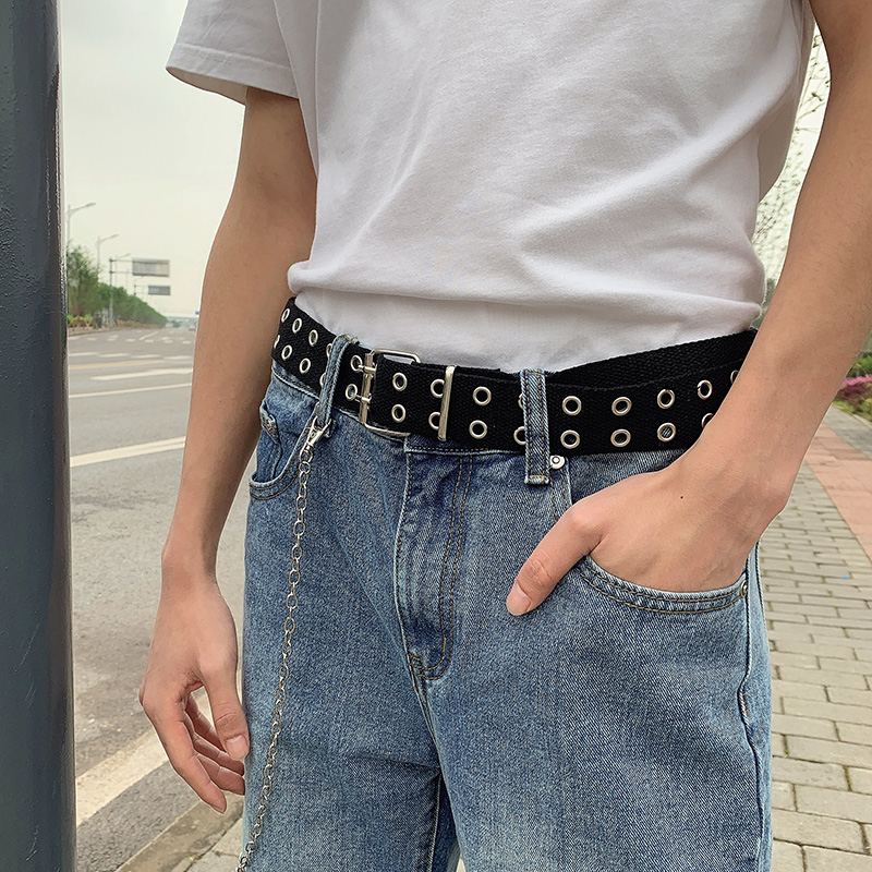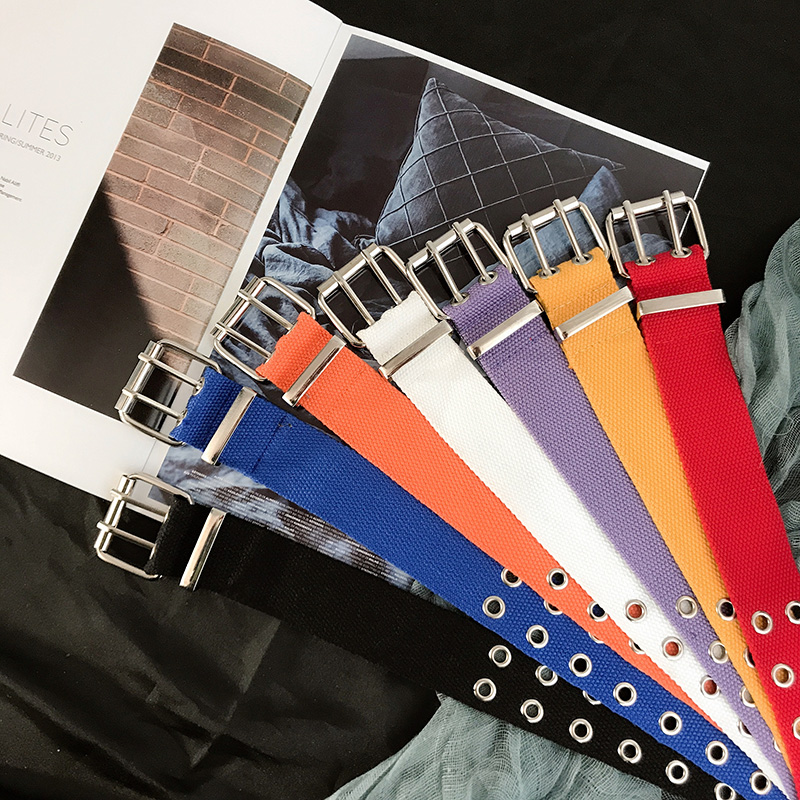 Canvas belt Men's fabric Korean version ins net red tide simple casual wear-resistant double needle buckle versatile women's belt