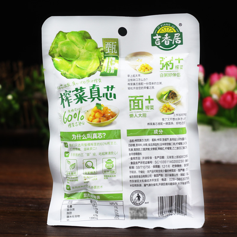 Jixiang Cuisine Genuine core 135g * 10 bags fresh and crisp pickled pickled vegetables Next meal appetizer Not spicy Sichuan sauerkraut