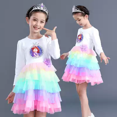 Frozen Aisha princess dress girls autumn long sleeve children's dress rainbow gauze dress birthday dress