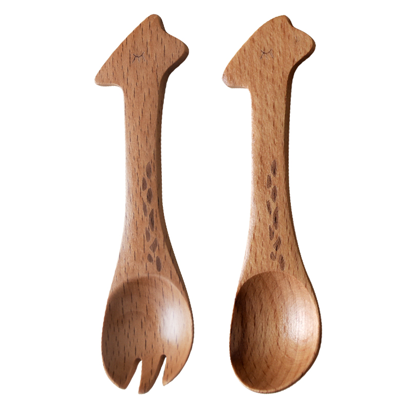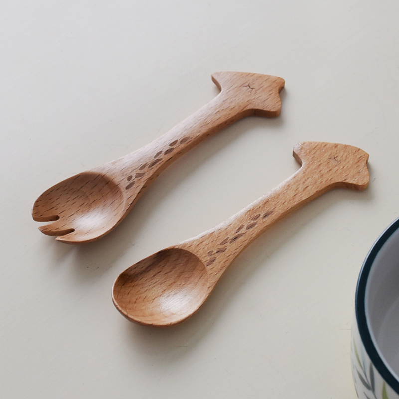 Solid Wood Cartoon Animal Spoon Creative Beech Wood Child Fork Spoon Fruit Fork Sweet Ice Cream Spoon Small Wooden Fork