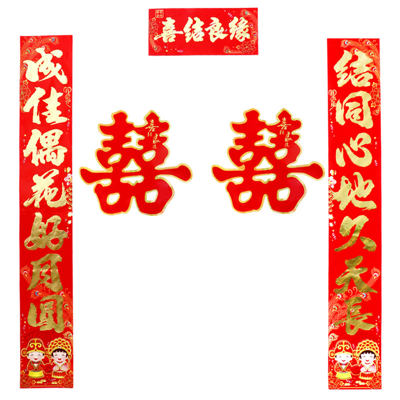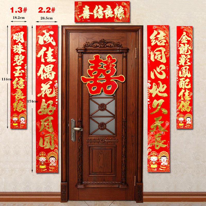 Wedding Couplets couplets Flocking Wedding men's Men's New Wedding Door to decorate the Sheriff's Single Sheriff's Double Sheriff's Word
